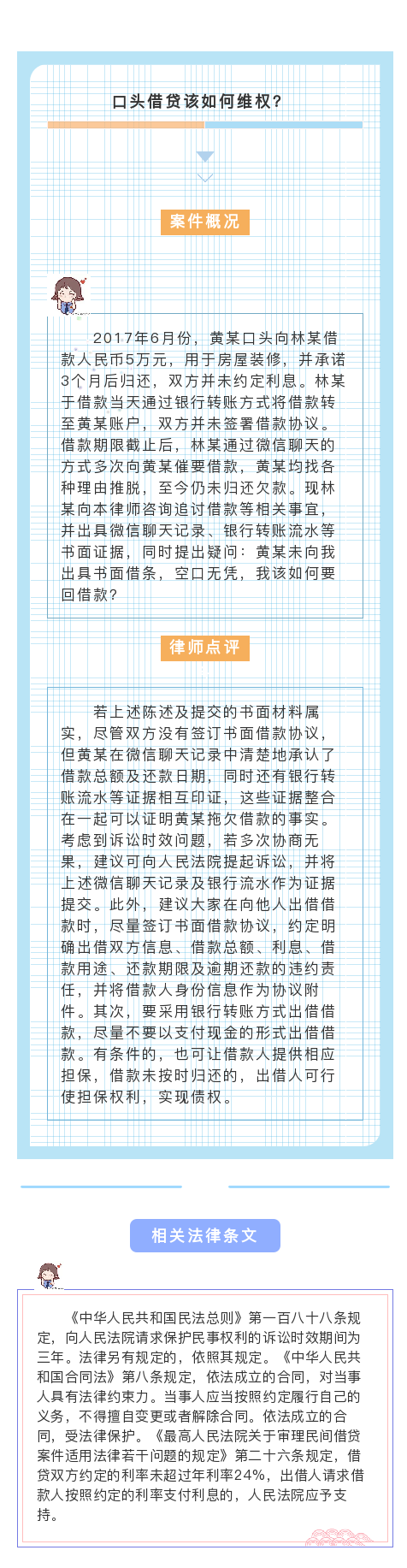 【公共法律服務“愷”樂園】口頭借貸該如何維權(quán)?