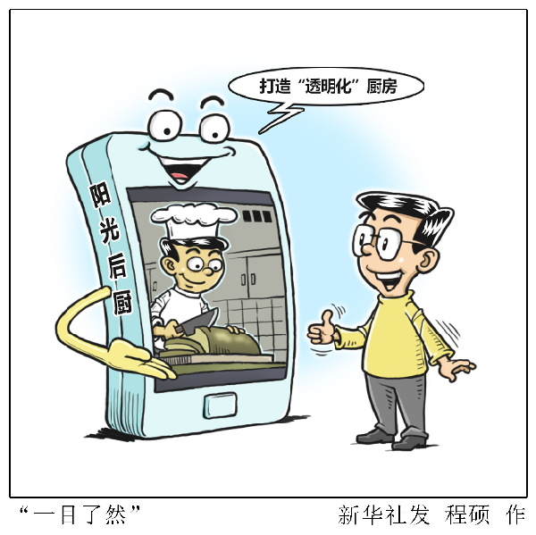 將“后廚”曬在陽光下也需要每個人的努力。面對數倍于監督管理人員的監督對象,單純依靠監督執法確有難度。多一雙眼、多一雙手納入社會管理體系,這張監督之網就會更緊更密。相關部門可以提供更便捷的社會監督反映渠道、開設有獎監督欄目,讓社會監督深入人心,更有實效。