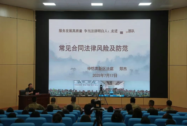 7月17日,惠城區法院仲愷法庭攜手惠城區檢察院仲愷檢察室走進轄區內某部隊,開展了一場“送法進軍營”暨法學生國防教育活動。法官、檢察官零距離為部隊千余名官兵送上“法治大餐”,而60余名法院暑期實習生也沉浸式走進軍營。在雙向奔赴的交流中,法治精神與愛國情懷同頻共振。