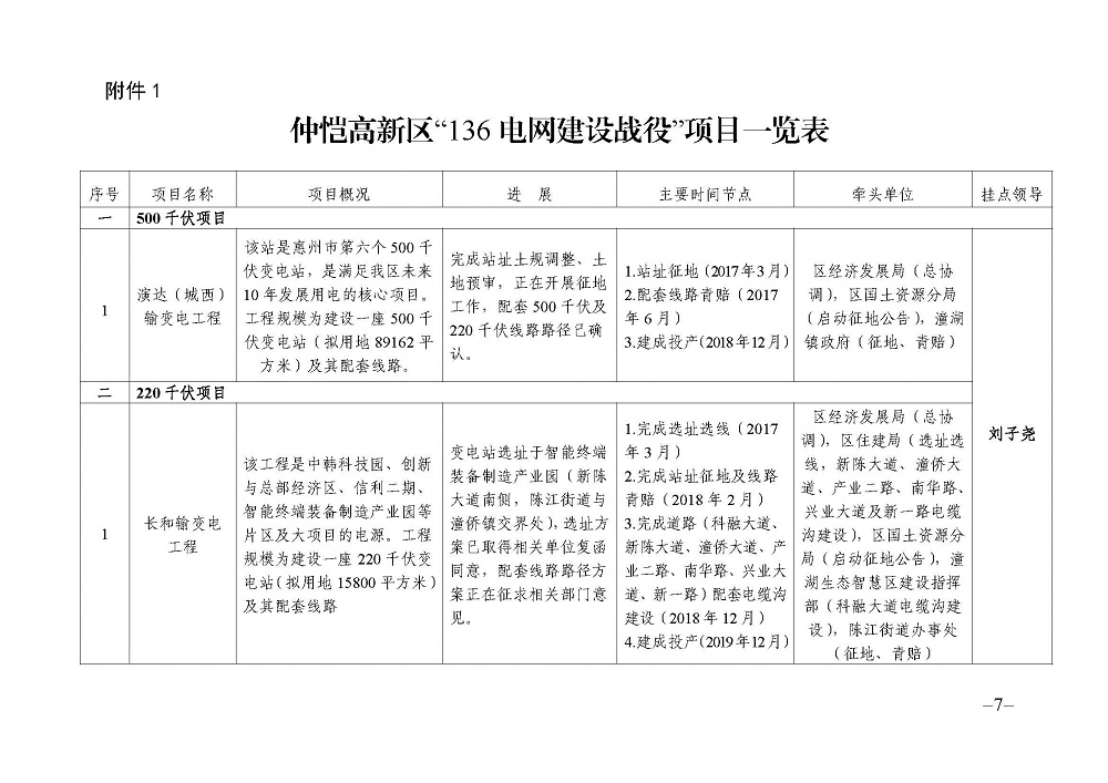 附件:1. 仲愷高新區(qū)“136電網(wǎng)建設(shè)戰(zhàn)役”項目一覽表